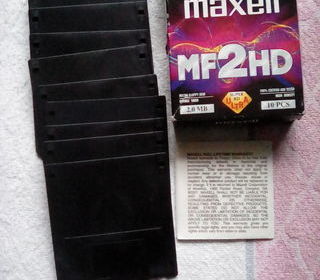 1 boite neuve de 10 disquettes 3,5'' Maxwell Haute Densité (jusqu'à 2 Mo) avec leurs étiquettes. Totalement neuves, jamais formatées. Conservées dans une pièce chauffée, elles s