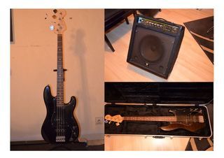 Basse SQUIER AFFINITI PJ BK avec étuit abs et stand, état neuf + Ampli HARLEY BENTON HB 80 W HP 12" avec housse de transport, très bon état L'ensemble 250 € Pas d'envoi, remise e