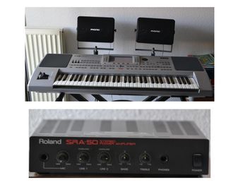 je vends Arrangeur KORG PA80 bon état+ampli Roland SA50 100 watts enceintes sur pieds et valise de transport