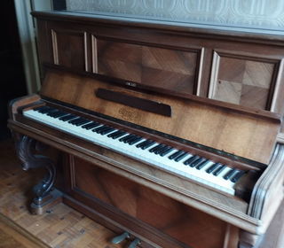 Piano droit magnifique en bois sculpté blanc avec dorures couleur or et ses 2 pieds splendides ainsi que ses 2 lampes rétractables de la prestigieuse marque Schimmel . Caisse de ré