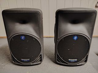 sono ibiza port8vhf-bt avec pied porte sono et transport a roulette avec deux micro hf et un micro wireless avec un transmetteur recepteur une guitare amplifier+ pied avec un jt
