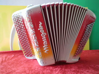 accordéon 96 basses, marque maugein, modèle amusette96, 5 rangées main droite, boutons gouttes d'eau, malette (instrument bénéficiant d'un équipement midi), 4000 euros