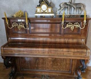 Piano droit Facteur KRIEGELSTEIN & CIE Grand Prix de l' Exposition Universelle de Paris 1900 Dimensions L 1.70 m, l 0.65 m, h 1.30 m, poignées et chandeliers en bronze doré bo