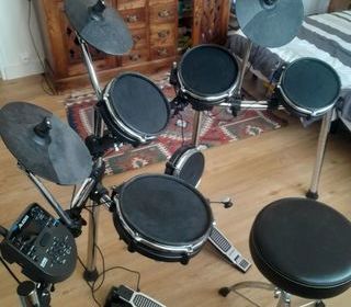 Vends batterie électronique Bird DDS1 complète, idéale pour débuter la batterie ou s'entraîner chez soi sans déranger. Kit complet avec pads, cymbales, pédales (grosse caisse + hi-
