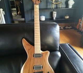 Cause cessation musique, vends cette guitare du luthier Franck CLAISE. Corps frêne des marais, table jaracanda. Manche acajou, touche 22 frets magnifique érable moucheté.Un P90 et