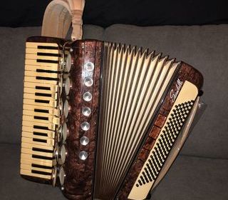 Scandalli Vintage dont je viens de terminer la restauration complète. C'est donc un accordéon chromatique 41 touches piano et 120 basses système 2/4 basses standards. Il est acco