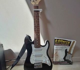 guitare harlay benton avec ampli +accessoires utilise 2 ou3 foi ampli hb 10 g +pupitre tres bon etat
