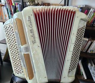 Accordéon 4 voix, double boite de résonance. Basson en boîte, 2 flutes , un piccolo en boîte. 120 basses , 3 registres à gauche . 5 rangs, 87 touches , 11 registres à droite E