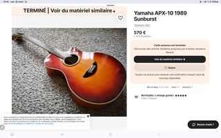 À vendre, guitare électro-acoustique Yamaha modèle APX-10 de l'année 1989 avec une finition sunburst. Elle dispose de 20 frettes et d?un préamplificateur intégré pour un son amplif