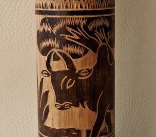 objet décoratif instrument de musique maracas de Madagascar en bois décoré sculpté hauteur 17,5 cm diamètre 5 cm