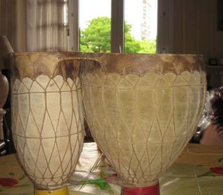 Bongo artisanal en peau de dromadaire et terre cuite du Maroc.
