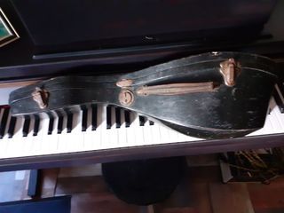 Manque une corde. Instrument ancien (1930 ?) et son étui état satisfaisant .Luthier Luigi VIcentini.