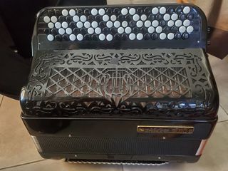 Superbe accordéon de marque Ballone Burini, 5 rangs main droite avec grande étendue, 120 basses en 3x3 4 registres . 4 voix main droite avec spécificité double basson et 2 flute