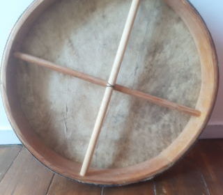 Tambour chamanique en peau de chèvre (0,57 )réalisé par le très grand artiste Éric Terrades