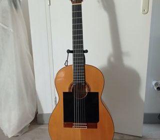 Je vends une guitare de fabrication espagnole de 1960. Elle est dans un très bon état de conservation. Les cordes nylons sont neuves. Il manque un bouton de mécaniques, comme i