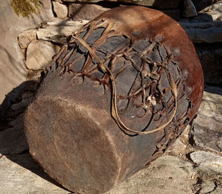 Kébéro - Antiquité, tambour de célébration, dble peaux, origine peuple Oromo en Éthiopie, diam 19 / 29, H 39. Djembé - Origine Mali, diam. 35 cm, H 60 cm KA - Tambour traditi