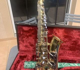 Saxophone dans sa boîte d'origine, servi 3 heures maximum.