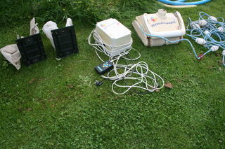 Robot nettoyeur pour piscine de grandes dimensions Marque BAYROL "SQUIRREL" Telecommande, programmable multifonctions, cable 25 m. 2 paniers mode d'emploi et fiche techn