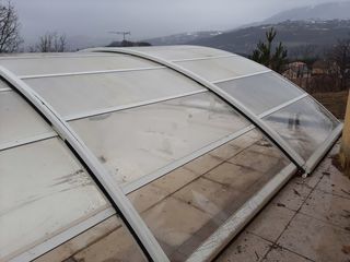 Vends abri de piscine semi-haut DESJOYAUX aux caractéristiques suivantes : Modèle : Prestige Nombre d"éléments : 6 Longueur d'un élément : 2,20 m Longueur totale : Environ 12 m