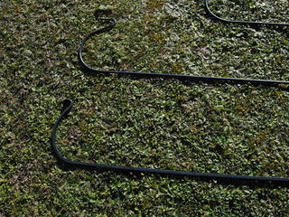 Barre noire en fer forgé de 2,25 m de hauteur en exellent état. Pointue à la base pour fixation dans le sol. Possibilité d'en avoir une 2ème (total 19 euros) A prendre sur plac