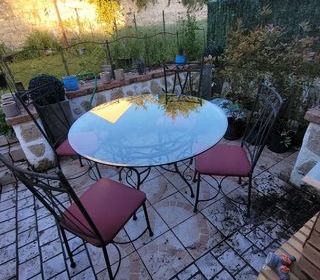 TABLE + 1 CHAISE EN FER FORGE dessus de table et chaise du carrelage hauteur de la table 72cm diamètre 66 ,5cm A RETIRER SUR PLACE