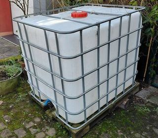 Cuve NEUVE Citerne Récupérateur Eau de Pluie 1000L - Sur Palette - Stockage ? Équipée d'une vanne d'arrêt.