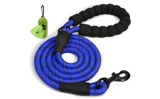 Je vend une laisse pour chien en nylon de 1 mètre 80 de longueur sur 1,2 cm de large avec sac pour ramasser les besoin du chien et la laisse a des traits reflètent à la lumière po