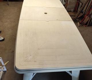 vends mobilier de jardin comprenant une table avec rallonge pour 12 personnes, chaises ,parasol (100euros) 4 plots (20euros) table de camping (20 euros) 2 tables formica (20 eur