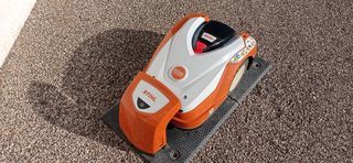 robot tondeuse STHIL modèle RMI 522 avec base de chargement et chargeur pour pelouse de 1500 m2 fonctionne très bien et révisé par professionnel en novembre 2025 guidage possib