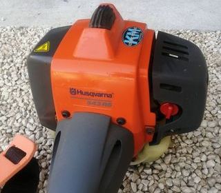 Débroussailleuse HUSQVARNA avec : son harnais / rotofile /4 lames différentes / trousse à outils / (mélange à 2 % conseillé avec l'huile de la marque !) Livret et visière de protec