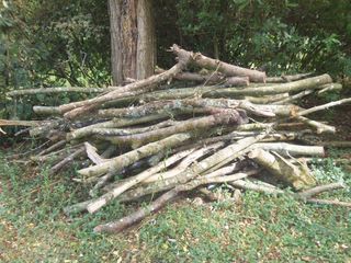 2 tas de bois secs à débarrasser manuellement, troncs et branches de diverses espèces. A découper pour le transport plusieurs troncs ( 2 à 3 remorques en plus), donc prévoir une re