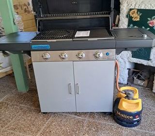 suite renouvellement mobilier extérieur...je vend la table en métal vieillir pour 8 a 12 personnes dimension 150 /180 avec brasero d'ambiance manque juste lyre pour le branchement.