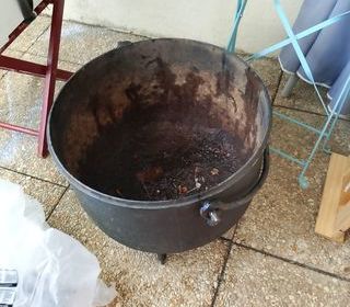 Chaudron fonte sans couvercle taille diamètre 43 hauteur 37 avec la anse a prendre sur place a marcillat en Combraille allier merci