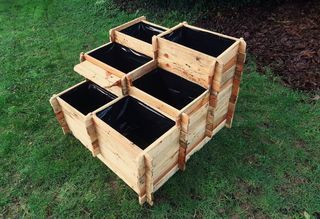 Vends carré potager à 6 étages (ensemble monobloc avec structure autoportante) comprenant éléments bois épaisseur de 18 mm et toile de paillage. Une étagère est intégrée dans la st