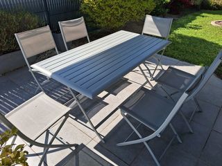 ? Salon de jardin Herperide pliable en aluminium ? Comprenant : ? 1 table L150 l 80 h 70 cm ? + 6 chaises pliable
