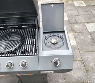 BRASERO - Barbecue Emma Gun Metal 4 Feux + 1 Side - FlexiGrill - Jusqu'à 12 convives - Surface de cuisson 64 x 41,5 cm -2 Tablettes dont 1 brà"leur latéral - 15,1 kW. Fournis avec
