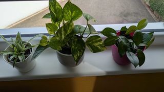 Lot 3 plantes sans les caches-pots chlorophytum chevelu à gauche Pothos au milieu Hoya Carnosa à droite