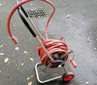 A Vendre Dévidoir sur roue En acier avec Tuyau d'arrosage et raccordement robinet Marque Gardena Venir chercher l'article