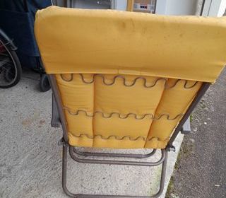 Vend chaise longue de jardin en tissu couleur jaune moutarde PLIANTE en très bon état A RÉCUPÉRER SUR PLACE PAS D'ENVOI MERCI