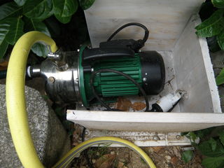 Pompe de puits extérieure vendue avec 2 kits d'aspiration de 6 et 7 m. Boite de protection contre la pluie.
