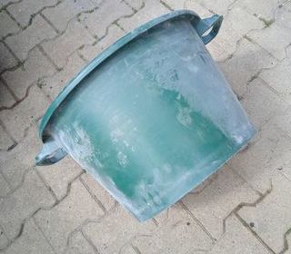 vends baquet/baille/bassine en plastique, rondes avec 2 poignees contenance environ 62 litres haut 34 cm diametre interieur 48 cm diametre exterieur 53,5 cm coloris vert,