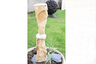 Cette ?uvre cherche à fusionner des matériaux robustes et éternels : la pierre et l'acier inoxydable. Cette sculpture en plein air incarne la résilience face à l'épreuve du temps.