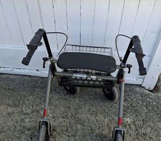 4 roues, freins aux poignées, tablette, panier A prendre sur place