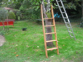 vends echelle en pin massif 195 cm par 46cm 5 marches tres bon etat crochets a l extremite