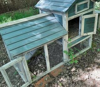 pour 2 ou 3 poules, pondoir, enclos grillagé, à restaurer.