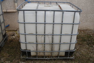 particulier vend réservoirs plastique très bon état pour récupération eaux pluviales de capacité 1000 litres avec armatures de renfort galvanisées et pouvant être gerbés
