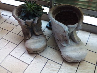 2 Chaussures en pierre pour décorer votre jardin ou votre balcon.