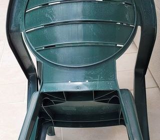 4 fauteuils de jardin, couleur vert foncé, empilables. Dim H 89 L 58 P 42. Très bon état