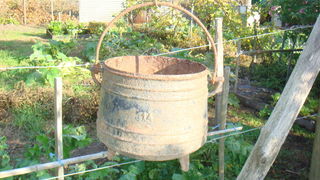 Très ancien pot en fonte qui servait à faire chauffer de l'eau dans la cheminée ! Poids :5 kg hauteur : 25 cm diamètre : 25 cm