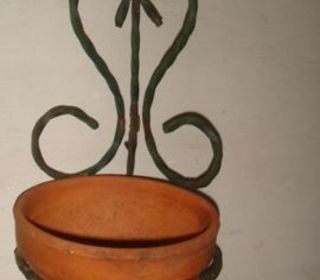 Porte pôt de fleurs en fer forgé en parfait état avec accrochage. Diamètre du pôt :10 cm le pôt est compris!